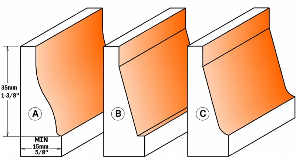 CMT 990.603.11 Fraise à bosseler verticale (coupeur plat), profil C 38x38x76,2 – tige 12 mm