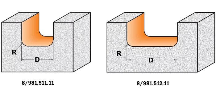CMT 981.512.11 Fraise à rainurer droite pour corian avec bords biseautés 25,4 mm R3,2 – tige 12 mm