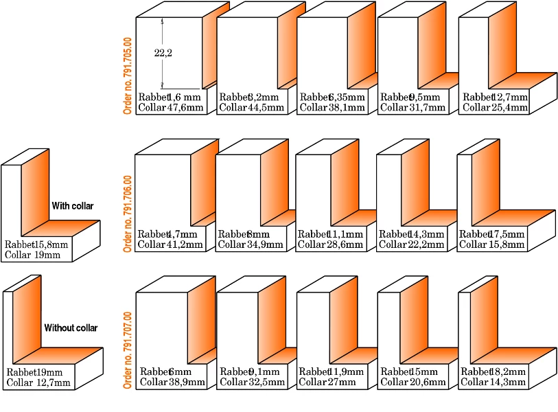 - Avec ce set, vous pouvez fraiser 17 profondeurs de feuillure différentes