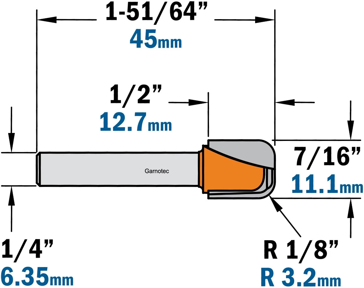 CMT 851.001.11 Fraise pour tasses et assiettes 11,1 mm R= 3,2 mm – tige 1/4″