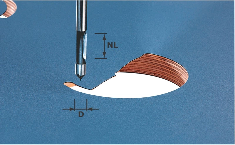 - Pour toutes sortes de découpes – la fraise de perçage plonge directement à travers le revêtement