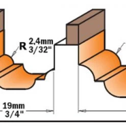 CMT Fraise à Profiler 741.380.11 Fraise à Profil Avec Roulement – Boule Creuse R=6,4 – Tige 6mm